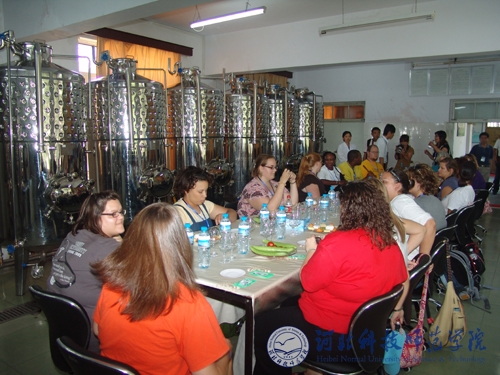图为来访师生食品工程系酿酒实验室参观