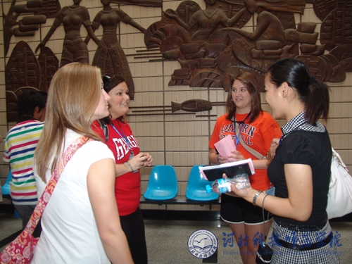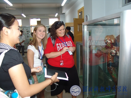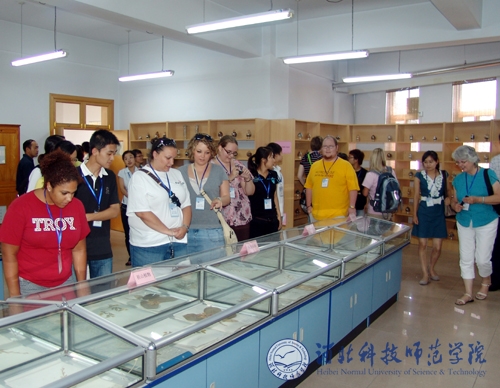 座谈会前,美国特洛伊大学师生一行首先在昌黎校区先后参观了我校生命科技学院动植物标本馆、河北省预防兽医学重点实验室、食品工程系酿酒实验室等。7月1日,来访师生在开发区校区分组听取了文法学院对外汉语教学文化课、体育系中华武术课、艺术学院声乐教学课,参观了艺术学院动漫设计专业作品展,观看了文法学院中国传统文化茶艺表演、服饰展演,参观了文法学院中国剪纸、中国书法展。参观结束后,来访师生与我校师生进行了中美友谊篮球比赛。晚间,汤生玲院长、孟令臣副院长陪同来访师生共同观看了“仲夏之约”中美交流师生联谊晚会。特洛伊大学师生的来访,对于增进中美两国人民友谊,促进两校文化交流,更好地展现中国传统文化的深厚底蕴和丰富内涵,让国外友人更好地了解中国,了解我校发挥了积极的促进作用。