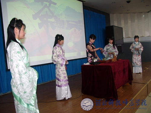 图为我校文法学院大学生在进行中国传统文化茶艺表演