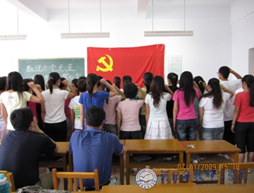 2009年7月1日,数理系党总支在秦皇岛校区逸夫楼A411室组织42名预备党员举行了入党宣誓仪式。数理系党总支副书记贠小波、数理系党总支全体成员、数学专业学生党支部和物理专业学生党支部的全体党员共80人参加了活动。