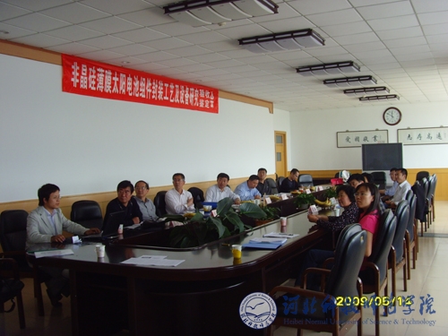日前,由我校机电工程学院马淑英教授主持的河北省科技厅课题《非晶硅薄膜太阳电池组件封装工艺及设备研究》举行了项目验收及成果鉴定会。东北大学秦皇岛分校汪晋宽教授、燕山大学孔令富教授等参加并主持了验收及成果鉴定会。