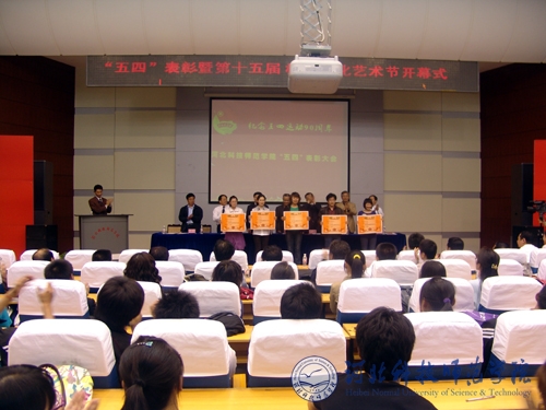 2009年5月4日,我校2008年度“五四”表彰暨第十五届校园文化艺术节开幕式在秦皇岛校区学术报告厅举行。共青团秦皇岛市委书记焦大伟,学校党政领导石千峰、汤生玲、宋绍富、孟令臣、刘泽义、杨洪青出席会议并为获奖代表颁奖。