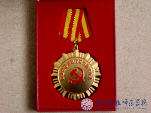 图为冯瑞银同志获得的荣誉奖牌