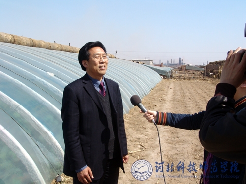 2009年3月19日,副院长王同坤教授陪同秦皇岛市科技局领导到我校“绿岛1号”科研示范基地——昌黎县靖安镇马芳营调研,查看“绿岛1号”黄瓜新品种的长势及量产情况。王同坤副院长就我校充分发挥科技人才优势,服务“三农”,为地方区域经济保驾护航等问题接受了秦皇岛电视台记者现场采访。 同日,“绿岛1号”黄瓜研发人闫立英教授分别在我校“绿岛1号”科研示范基地和卢龙县刘田庄镇政府会堂为全县200余名菜农授课现场接受了秦皇岛电视台记者采访 。