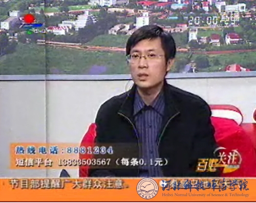 2009年3月20日晚,我校食品工程系副教授李汉臣老师座客秦皇岛电视台每天7:50进行现场直播的《百姓关注》栏目。李老师作为食品安全问题嘉宾,就目前秦皇岛市市场上出现的“问题豆芽”现象做了现场解答。