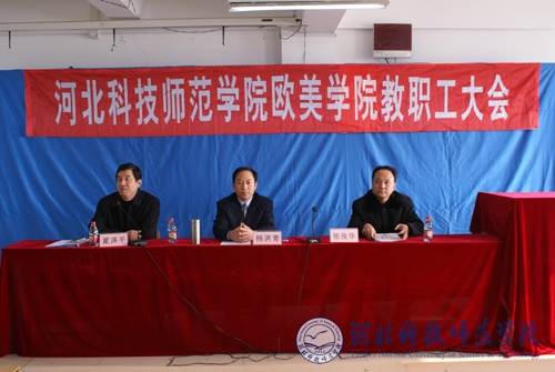 图为我院欧美学院教职工大会会场