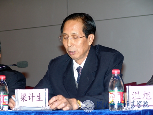 图为省指导检查组组长、河北工业大学党委副书记梁计生同志在会上讲话