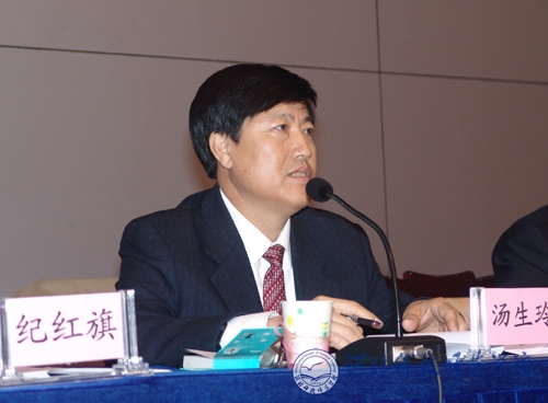 图为学院党委副书记、院长汤生玲同志在主持会议