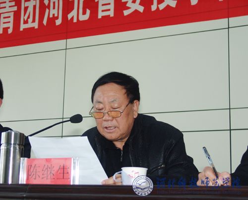 学院党委副书记陈继生在讲话时表示,团省委授予付华同学“河北省优秀共青团员”、“河北青年五四奖章”荣誉称号,既是对我院付华同学优秀思想、行为的表彰与奖励,也是对付华身上展现出来的中华民族传统美德的赞美和弘扬;既是对付华同学个人的充分肯定,更是对所有家庭贫困大学生的鼓励和激励。付华同学自强不息、昂扬向上的精神,知恩报德、仁义孝顺的品行,乐观自信、笑对人生的心态,勤于奉献、勇挑重担的作风,发奋求学、拼搏进取的意志,值得广大青年学习。我们树立这样一个典型,也是希望其他的同学能够受到教育和启迪,发奋求学,积极向上,成为符合国家建设发展需要的优秀人才。同时,也希望通过对付华事迹的宣传,让社会各方面更加关注高校中的贫困生群体,争取各方面的支持和帮助,让这些生活贫困、品学兼优的大学生拥有一个良好的学习条件。