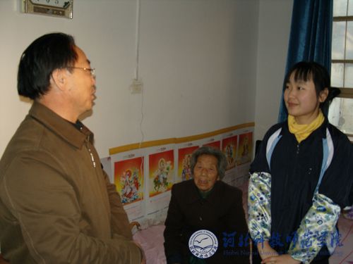 2008年12月4日,秦皇岛市社科联主席曹丽荣、副主席潘中立、秦皇岛德大房地产开发公司副总经理梁剑一行来我校慰问特困生付华母女,并予以生活、学习等方面的物质资助。我院副院长孟令臣、学生处副处长马爱林陪同慰问。
