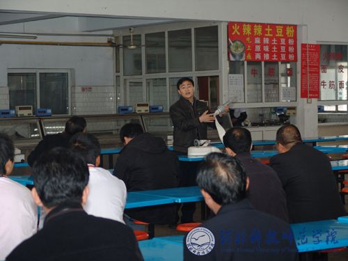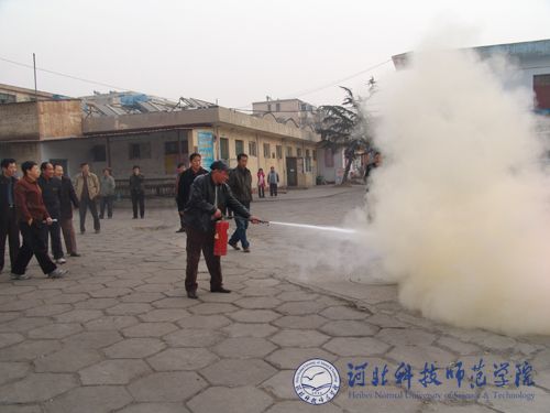 图为保卫处的同志在秦皇岛校区对后勤服务公司职工进行消防知识培训