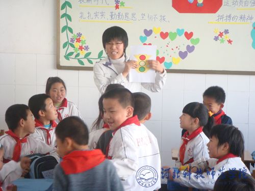 图为我校青年志愿者在对小学生进行安全知识辅导