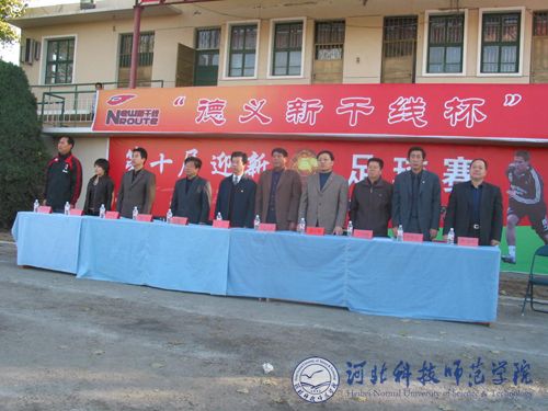 2008年11月8日上午8点30分,我校在昌黎校区举办2008年第十届“德义新干线杯”足球赛。学院副院长、体育运动委员会主任房海出席开幕式并致开幕词,昌黎校区各单位与各系领导以及德义新干线经理何芳女士参加了开幕式。
