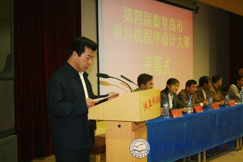 我院副院长房海教授在开幕式上致辞。他代表我校对各驻秦高校的领导和师生的到来表示欢迎。并希望以此次单片机程序设计大赛为契机,今后进一步加强与各驻秦高校在单片机应用技术领域的交流与合作,共同为各高校该项事业的发展做出积极的贡献。