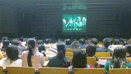 图为工商管理系全体学生党员和入党积极分子在认真观看《东京审判》影片