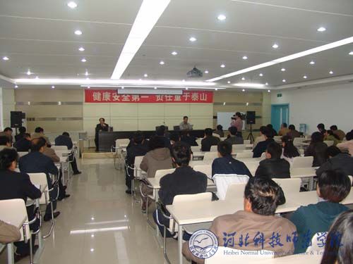 党委副书记陈继生在会上宣读了关于成立我校卫生防疫与饮食安全工作领导小组的通知,传达了河北省卫生厅下发的关于加强食品安全工作的文件精神和秦皇岛市市长朱浩文在全市食品安全大检查和专项整治工作会议上的讲话精神。全体与会人员收看了我校饮食安全突击检查活动的录像片。后勤与国有资产管理处处长邵忠汇报了我校食品卫生安全工作。党委书记石千峰在会上发表主题讲话。石书记强调,必须高度重视我校卫生防疫与饮食安全工作,牢固树立“健康安全第一,责任重于泰山”的意识;必须尽快改变我校食品安全工作的现状,强化食品卫生安全监管机制,在贯彻落实省、市有关部门通知精神和相关规定,努力提高我校卫生防疫和饮食安全工作水平方面抓好落实;必须进一步强化监督,着力消除食品安全工作的隐患;必须广泛开展食品卫生知识和安全知识的宣传教育。石书记指出,本次会议既是一次强化我校卫生防疫和食品安全的工作会议,又是强化我校卫生防疫和食品安全工作的动员大会,各相关部门和同志们要进一步明确责任,真正做好食品卫生安全工作,确保广大师生的健康安全。