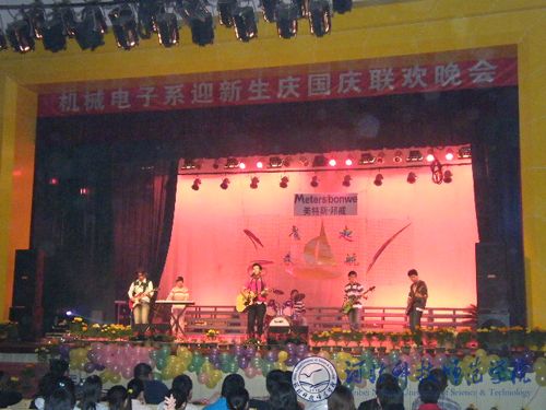 图为机械电子系迎新生、庆国庆联欢晚会现场