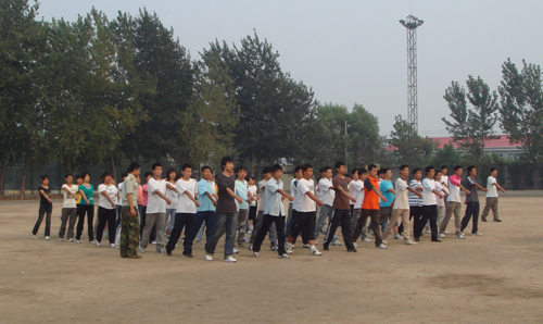 军训场上,飒爽英姿的教官正认认真真地指导新学员们做着每一个动作,从不放过每一个细节,学员们在教官的指导下高喊着口号,挥舞着双臂,迈着矫健的步伐在训练场上行进,整个训练场上焕发着青春的活力。但任2008级新生军训的教官是我校自己培养的国旗班成员,他们各个英姿勃发,素质过硬,素日承担着校内升降国旗任务,成为我校一道靓丽的风景线。此次军训,他们成为了我校国旗班组建以来首次为大一新生进行军训的教官,承载着全校师生的重托,努力地完成着这项崭新而艰巨的重任。他们传承了以往部队教官的风范,又针对大一新生的身体素质、精神状况等具体特点,进行了专门的军事化训练,保证了军训的质量。受训学员充分发扬了不怕苦不怕累的精神,白天顶着骄阳认真在训练场上坚持训练,晚上学习校歌、整理内务,接受入学教育。