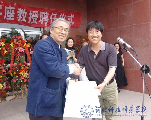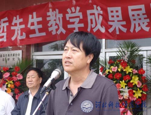 2008年6月6日上午,颜圣哲先生教学成果展暨客座教授聘任仪式在我校开发区校区举行。秦皇岛市政府台湾事务办公室主任廉茹艳、副主任董景龙,秦皇岛市文联主席牛兴国,秦皇岛市文联副主席、美术家协会主席吴桂平,秦皇岛市文联副主席、中国画研究会会长张国兴,秦皇岛市广播电视局副局长高瑞华,我院党委副书记、院长汤生玲,党委副书记陈继生,学院党委宣传部、统战部部长赵宗宝,艺术系主任张海燕、党总支书记李玉华、副主任刘进成及我校艺术系师生200余人参加了教学成果展暨客座教授聘任仪式。