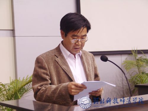 图为我校党委常委、组织部长、工会主席刘泽义同志向大会致辞