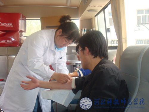 2008年5月12日14时28分,四川省汶川县发生里氏7.8级强烈地震,地震涉及范围之广,灾难之大,都是近几年所未见的。受灾状况触目惊心,牵动着全国人民的心。灾区急需医疗救助,为了支援南方灾区的抗灾工作,奉献我校青年学子们对灾区的一片爱心,5月13日,我校青年志愿者协会积极与秦皇岛市中心血站取得联系,血站于5月14日中午12:40派出一辆采血专车抵达我校进行采血支援灾区。 我校青年志愿者协会积极协助市中心血站工作人员工作,数百名爱心青年齐聚车前,排起长长的队伍,准备为灾区奉献自己的一份力量,整个活动进行的井然有序,凸现了当代大学生的爱国热情和中华民族“一方有难,八方支援”的优良传统。