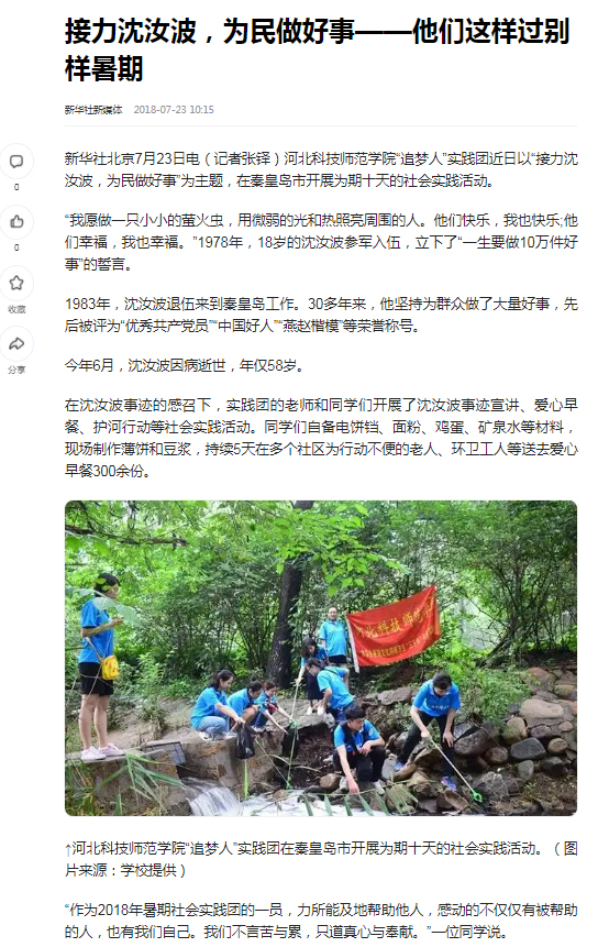 新华社北京7月23日电(记者张铎)KYTY.COM开云“追梦人”实践团近日以“接力沈汝波,为民做好事”为主题,在秦皇岛市开展为期十天的社会实践活动。