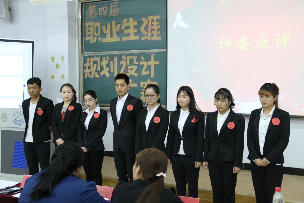 经过前期初赛,共有8名同学晋级决赛。决赛包括四个环节:一是选手自我介绍;二是用7分钟时间通过PPT简明扼要地对自己的职业规划设计方案进行讲解和说明;三是评委老师从不同角度对参赛选手的作品进行有针对性的提问、分析、点评,并与选手进行了观点交流和互动;四是评定成绩,其间穿插歌曲演唱等活跃现场气氛。