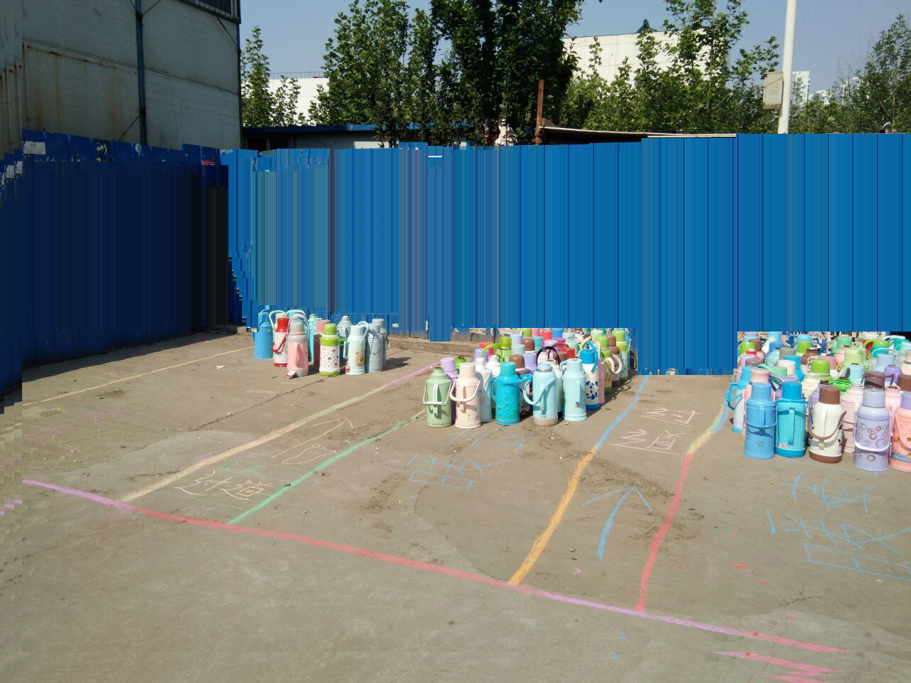 由于学校学生较多,打开水也是同学们的一个重要生活项目。但是很多同学为了自己拿取暖壶方便,都随手把暖壶放在了开水房附近的道路两旁,不但影响通行,也造成了小小的安全隐患,如丢失、破损。就此,建筑装饰工程专业16级的青年志愿者们发动起来,把暖壶归拢好,并画上格子,给暖壶一个可以安全放置的地方。