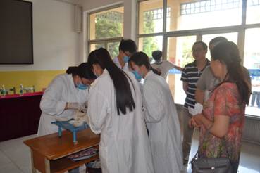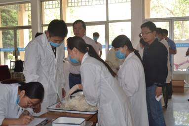 参赛的四个小组分别进行了鸡的病理剖检、小白鼠的病原菌检查、兔的胃切开手术,经过三个小时的激烈角逐,第二组同学以较强的专业技术及熟练的操作技能获得了本次比赛一等奖。