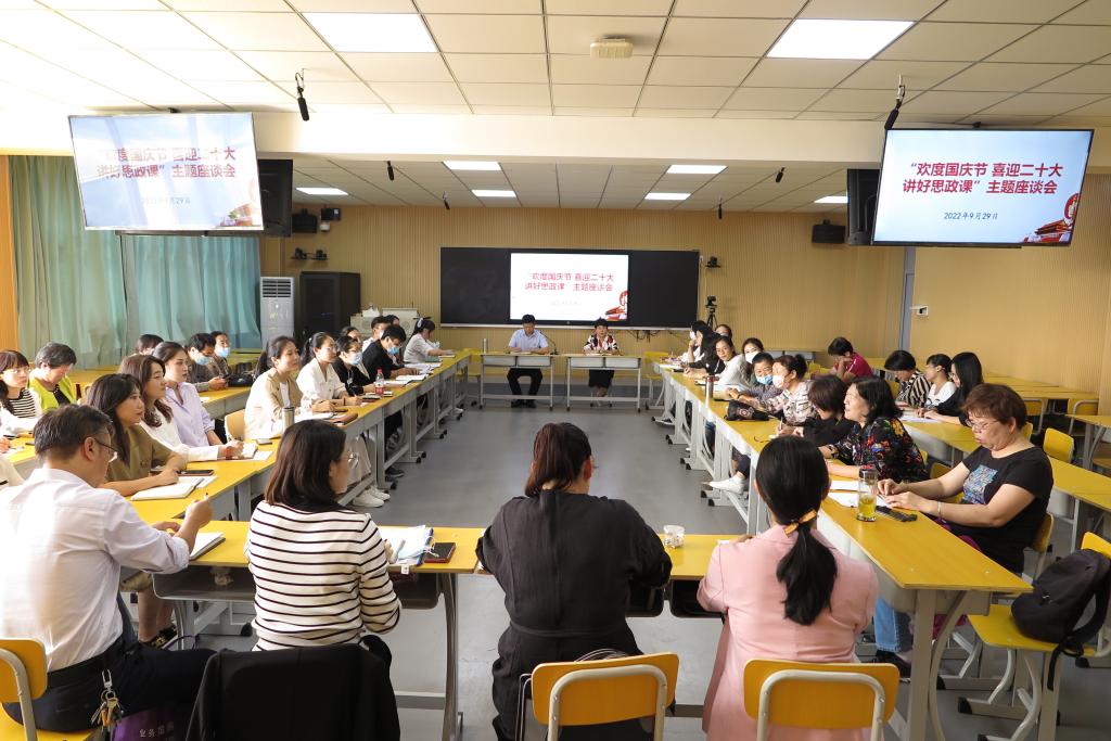 为庆祝新中国成立73周年,以实际行动迎接党的二十大胜利召开,增强思政课教师使命担当意识,激发思政课教师爱岗敬业精神,更好推进马克思主义学院教风、学风、作风建设,2022年9月29日下午,马克思主义学院举行“欢度国庆节 喜迎二十大 讲好思政课”主题座谈会。马克思主义学院领导班子成员、全体思政课教师和管理人员参加。