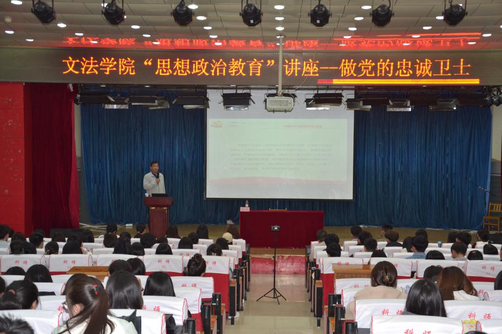 2023年4月20日下午,文法学院举办以“做党的忠诚卫士”为主题的思想政治教育讲座。文法学院500余名师生参加活动。