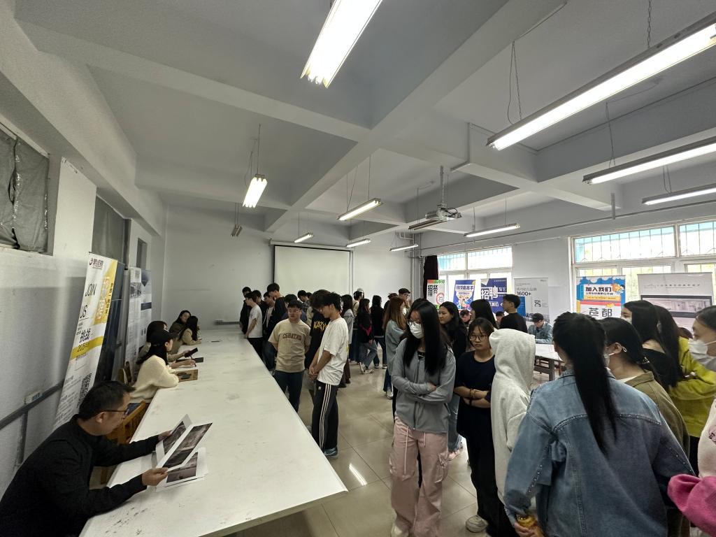 澜舍装饰材料集团公司、璞筑设计、天时教育、点石创意、鲸作文化、节构者装饰设计、光素空间美学设计、城市人家装饰工程有限公司等10余家优质企业和单位代表参加活动,并在参观完学生作品展后,举行现场招聘会,多名同学对招聘的企业表示出浓厚兴趣,初步达成就业意向。