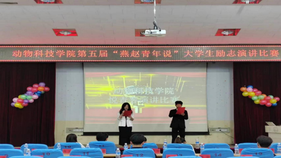 动物科技学院组织青年学生积极响应当前深入开展的学习贯彻习近平新时代中国特色社会主义思想主题教育的工作安排和部署要求,组织学院青年大学生开展了以“坚定理想信念讴歌伟大时代,学习榜样激发动力以自强不息奋发有为的精神奉献新时代”为主旨的第五届“燕赵青年说”大学生励志主题演讲赛活动。