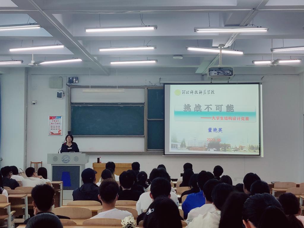 为更好的准备学院创新设计竞赛——结构设计竞赛,使参赛同学更全面、准确、清晰地掌握赛题的一些要求及注意事项,2023年5月18日,城市建设学院举办结构设计竞赛经验分享讲座。邀请城市建设学院董艳英教授担任主讲人,相关指导教师和参赛选手参加了本次讲座。