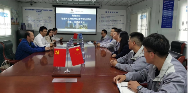 除与企业人力负责人进行探讨,学院走访一行人还来到中冶天工集团渤海公司天津凯华新建电子封装材料生产基地项目部,看望毕业生并与毕业生开展座谈,了解毕业生个人发展、工作与生活情况,征求毕业生对母校的意见建议。学院领导老师的关心与重视使毕业生深受感动和鼓舞,纷纷感激母校和单位的培育之情,表示在今后的工作中一定会加努力,扎扎实实干好本职工作,回报母校和单位。