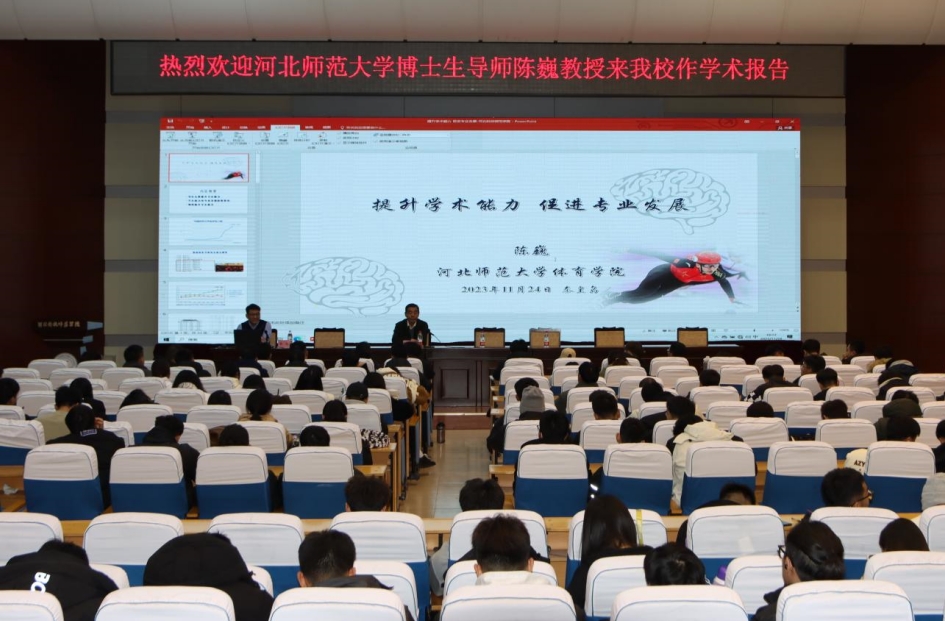 2023年11月24日下午,河北师范大学体育学院副院长、博士生导师陈巍教授受我校体育与健康学院邀请,来校作题为“提升学术能力 促进专业发展”专题报告,体育专业大三本科生、在校研究生和青年教师听取报告会。报告会由体育与健康学院院长陈庆合教授主持。