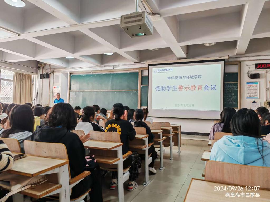 2024年9月26日,海洋资源与环境学院召开本年度拟受助学生警示教育会议。学院本年度全体国家奖学金、励志奖学金、助学金拟受助学生、学工办、团委负责人及专职辅导员参加会议,全院各专业班级班长、团支书列席会议。会议由学院学生工作负责同志主持。