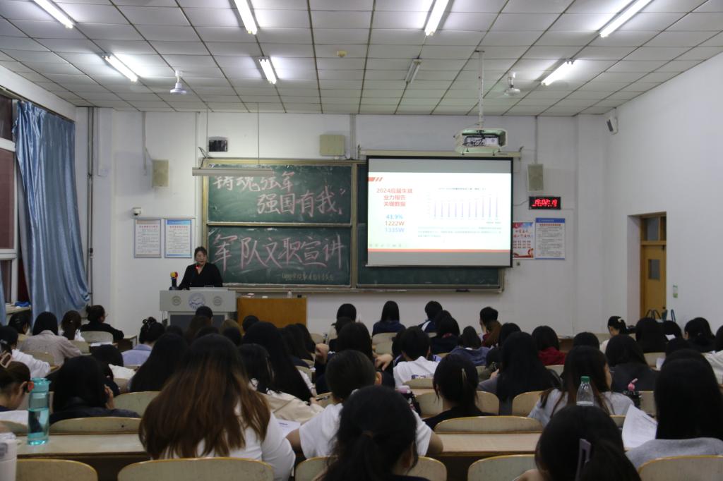 2025年9月25日,财经学院举办“铸魂强军,强国有我”军队文职宣讲,旨在补充专业人才,优化军队结构,针对非作战领域专业需求吸纳优质人才。讲座由我校财经学院军队文职项目负责人、新青年培训河北分公司经理、高校毕业生就业协会本科专委会委员王研老师主讲,通过实用经验帮助学生了解军队文职相关工作。