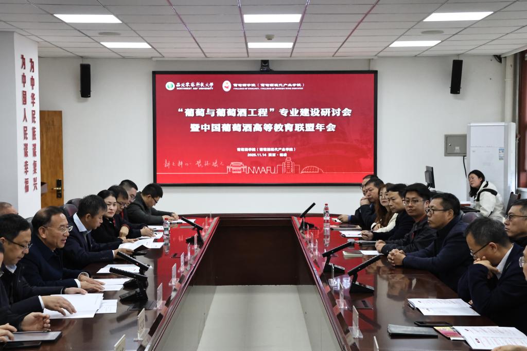 2025年11月14日,由西北农林科技大学葡萄酒学院主办的“第二届全国‘葡萄与葡萄酒工程’专业建设研讨会暨中国葡萄酒高等教育联盟年会”于西安杨凌举行。来自全国20余所高校、政府及企业的50余位专家学者汇聚一堂,共同参与此次学术盛会。我校食品科技学院暨葡萄酒学院院长侍朋宝受邀参会,并作了题为“应用型本科酿酒工程(葡萄酒方向)专业建设及成效”的主题报告。