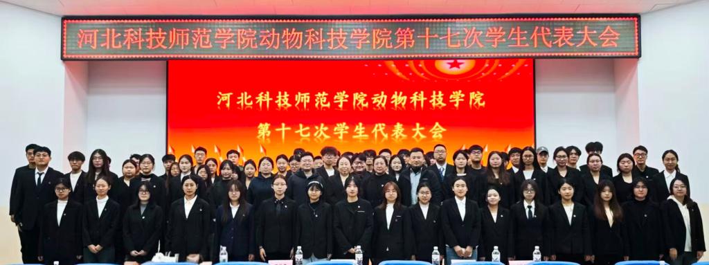 2025年12月2日,动物科技学院第十七次学生代表大会在昌黎校区学术报告厅隆重召开。学院领导、辅导员代表与全院62名学生代表齐聚一堂,共商学生发展大计,擘画学院团学工作新蓝图。