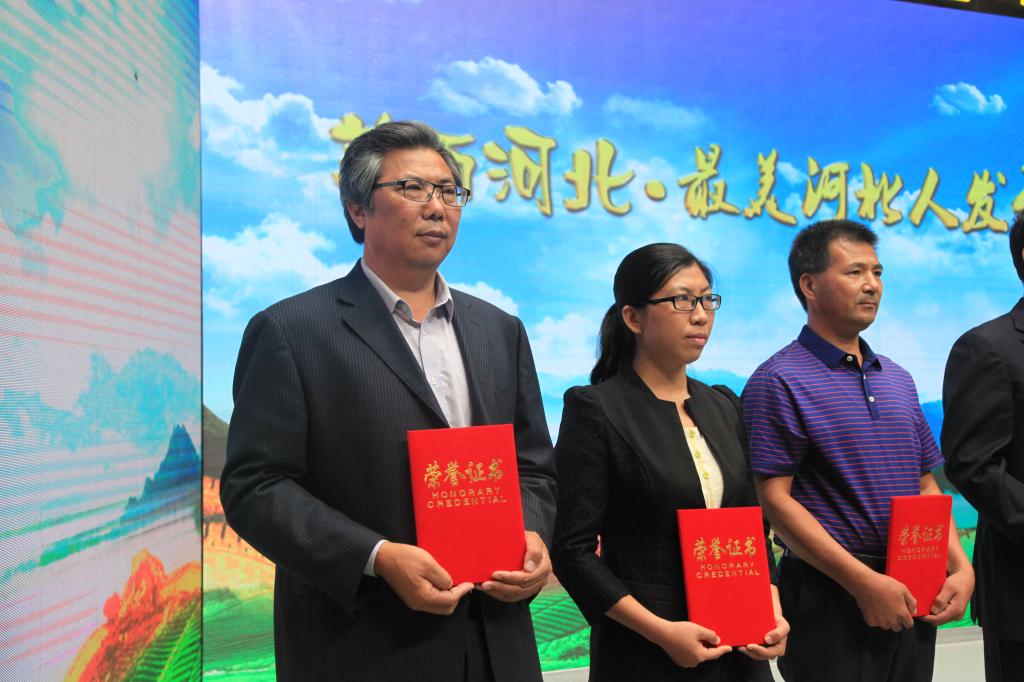 张立彬教授(左一)荣获河北省李保国式科教扶贫突出贡献者荣誉称号