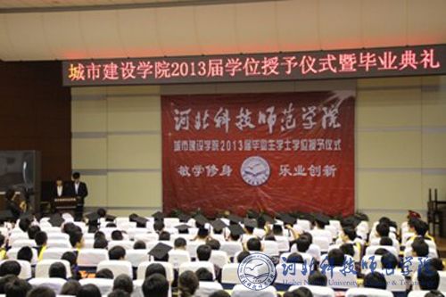 2013年6月16日上午,城市建设学院2013届学生毕业典礼暨学士学位授予仪式在秦皇岛校区学术报告厅举行。学院党委书记朱天志,院长邓西录,副书记、副院长王伟,副院长李政以及全体老师和228名2013届本科毕业生参加了毕业典礼和学位授予仪式。