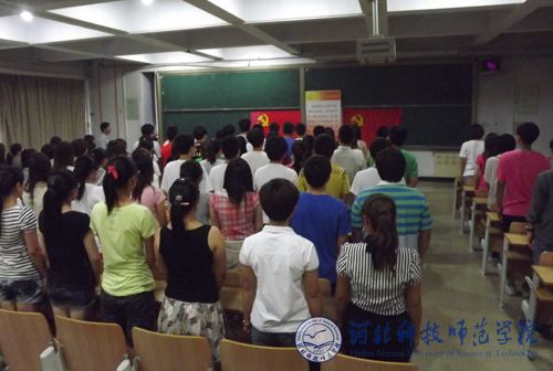 全体党员同志在李佩忠同志的带领下庄严宣誓。李佩忠同志要求与会同志要谨记入党誓词,保持党员的先进性,吃苦在前,享受在后,牢记中国共产党为人民服务的宗旨,希望毕业生党员在离校前做好表率,文明离校。(编辑:孙艳敏 审稿:田毅)