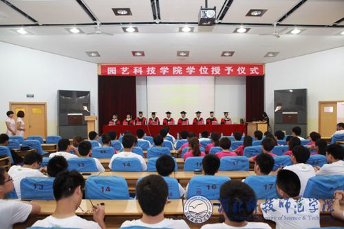 2013年6月18日上午9时,园艺科技学院在昌黎校区学术报告厅举行2013届毕业生学位授予仪式。园艺科技学院学位评定委员会委员项殿芳、杨俊明、李佩忠、齐永顺、王久兴、王学东、陈海菊以及院团委书记、各毕业班班主任、园艺科技学院2013届全体毕业生参加了学位授予仪式。学位授予仪式由李佩忠主持。