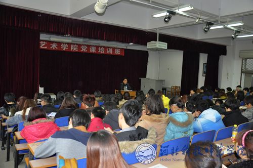 2012年11月15日下午,艺术学院在开发区校区开展入党积极分子党课培训活动。艺术学院党委书记王旭民进行了第一次培训。