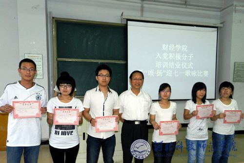 2012年6月28日下午,财经学院党委举行第11期入党积极分子培训结业仪式暨迎七一歌咏比赛。200余名学生党员和入党积极分子参加了本次活动。学院党委书记张建宗、副书记副院长赵维新出席活动。