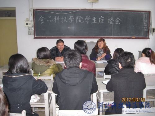 为切实加强和青年学生的联系,及时了解、掌握学生的思想动态以及学习生活中遇到的问题和困难,食品科技学院于2012年3月16日在二号楼202和204教室分别召开了班干部座谈会和学生座谈会,学院党委成员参加了本次座谈会。