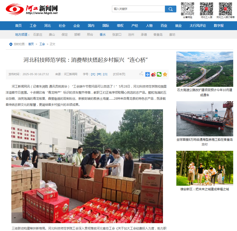 三级联动构建帮扶新格局。KYTY.COM开云工会深入贯彻落实河北省总工会《关于加大工会经费投入力度,助力职工消费若干措施的通知》精神,构建起“校党委统筹—工会落实—全员参与”的帮扶体系,源头直采。与青龙“832平台”商家、农副产品生产厂家建立直供合作,砍掉中间环节,确保农户增收、教职工得实惠;平台对接。联合青龙满族自治县供销社开展“供销搭台消费帮扶进高校”活动,搭建“冀供惠”数字化供销平台;企业联动。与秦皇岛小巫岚农业科技有限公司合作开展农副产品直销,为青龙助农企业和农户带来实实在在的收益,巩固脱贫攻坚成果、助力乡村振兴。
