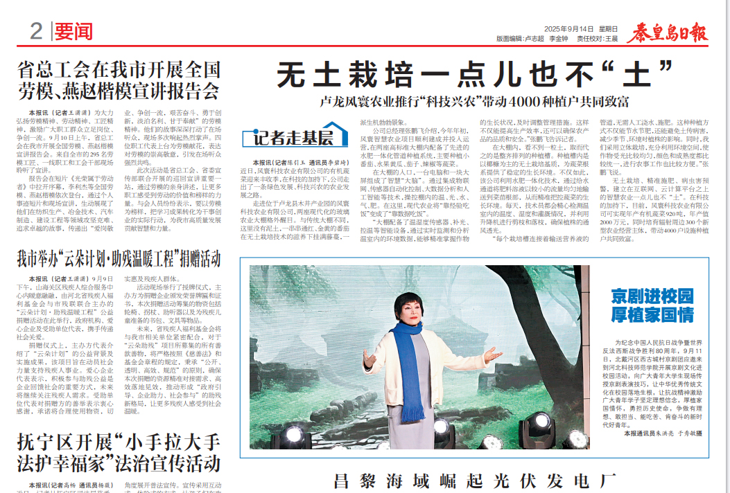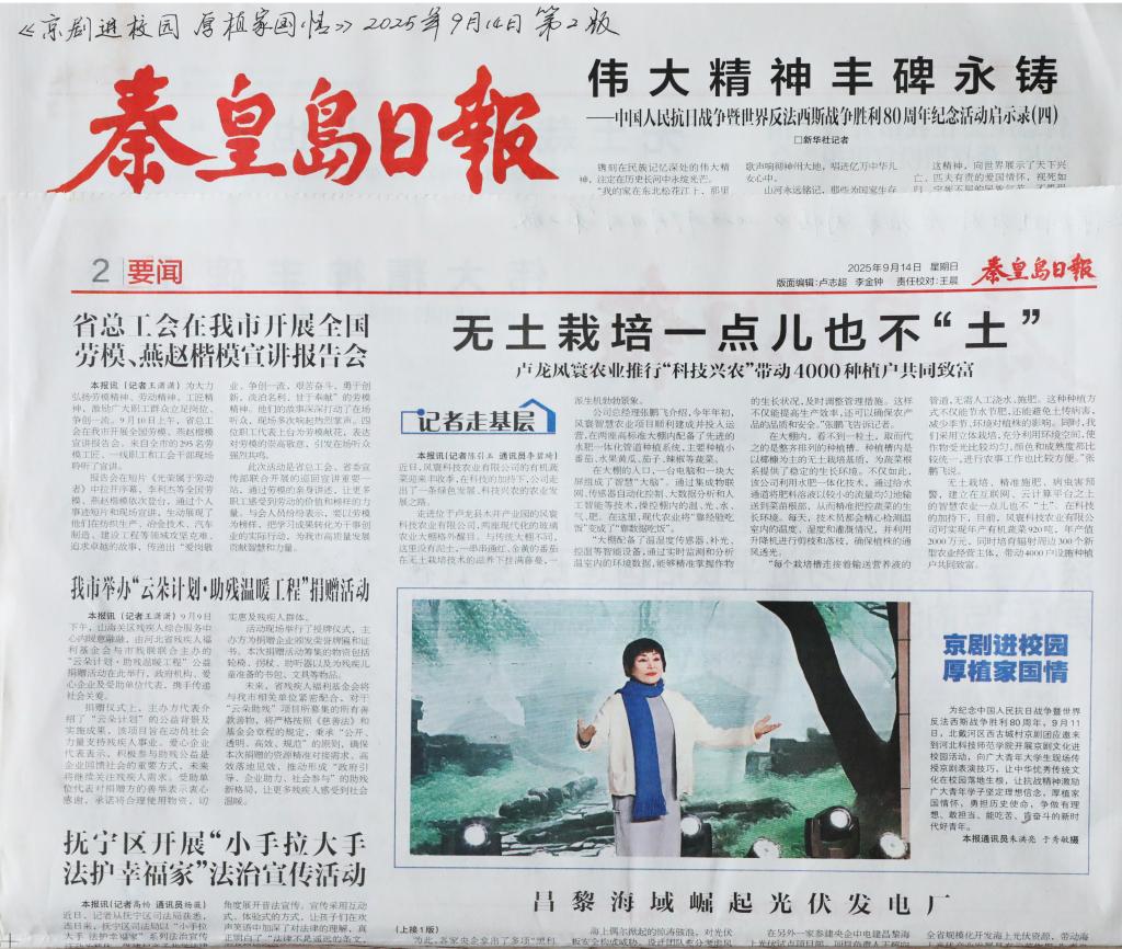 《秦皇岛日报》2025年9月14日第二版宣传报道